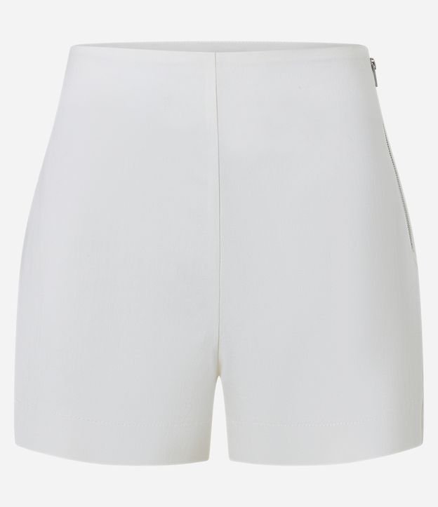 Short Curto em Bengaline com Zíper Tratorado Off White