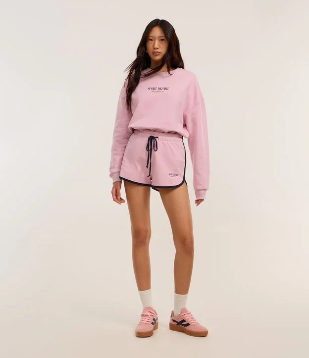 Short Curto em Moletom com Forro Fleece e Cós com Amarração Rosa