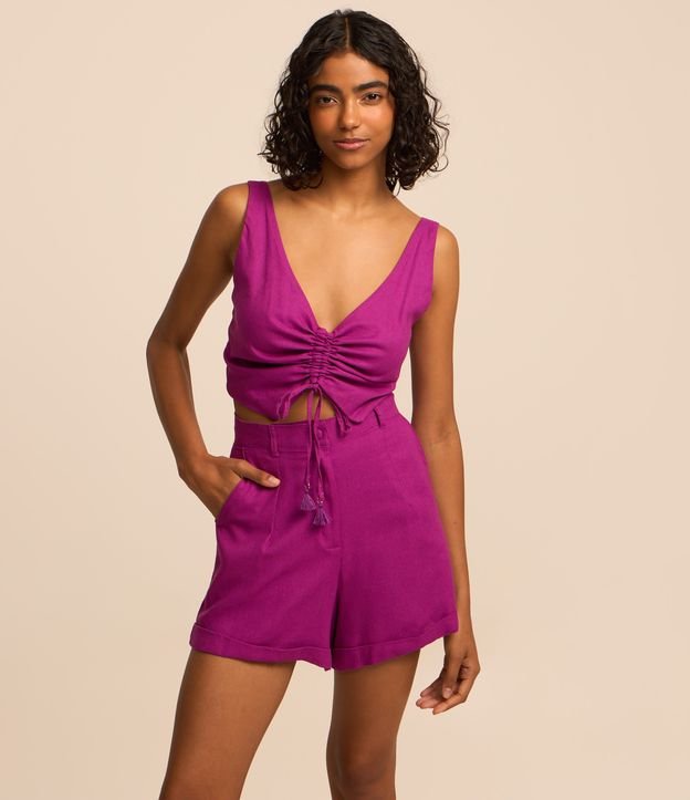 Short Curto em Viscolinho com Barra Virada