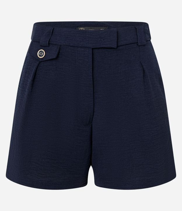 Short de Cintura Alta em Airflow Pregas e Lapela Abotoada Azul Marinho