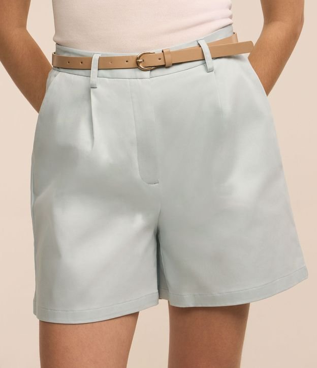 Short em Alfaiataria com Cinto de PU e Fivela de Metal
