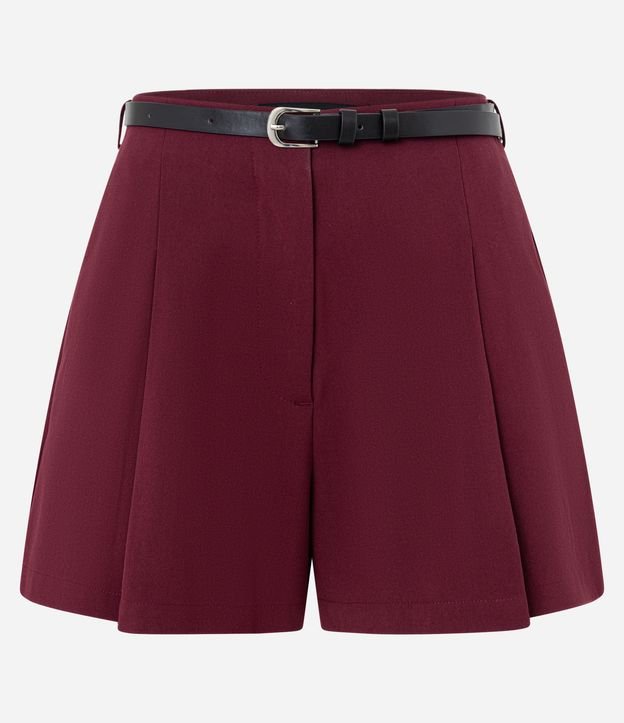 Short em Alfaiataria Lisa com Cinto Fino Vinho