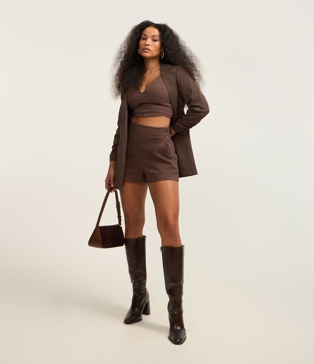 Short confeccionado em bengaline, com bolsos frontais e zíper lateral tratorado.