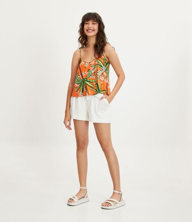 Short em Linho com Cós Franzido e Faixa para Amarração
