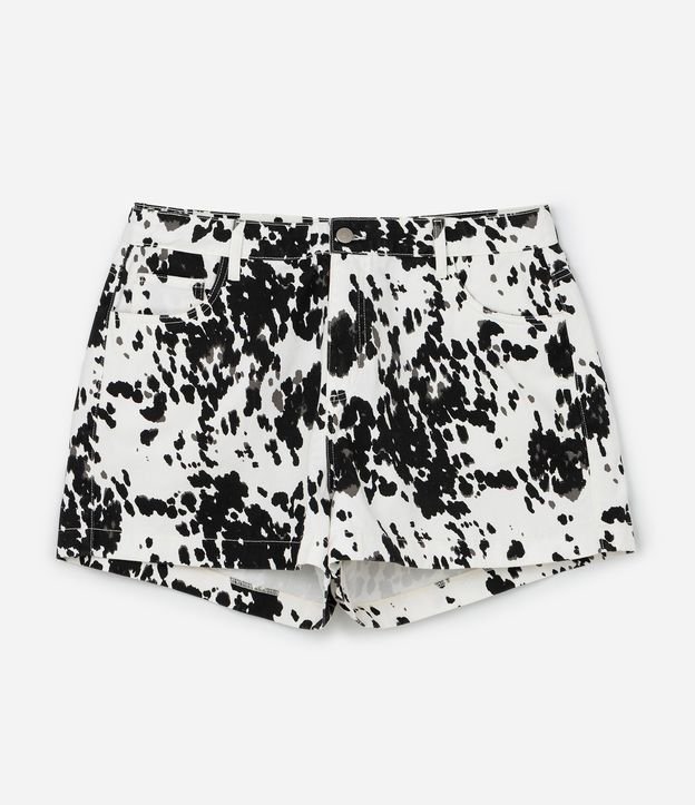 Short em Sarja com Estampa Animal Print Vaquinha Off White/Preto