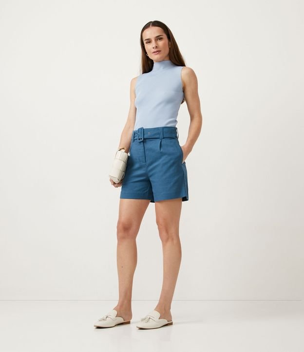 Short em Viscolinho com Cinto Fivela e Pregas