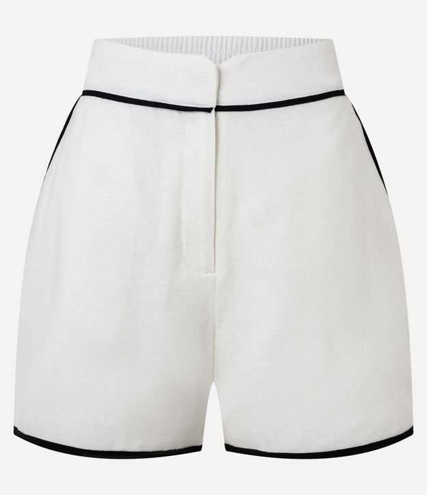 Short em Viscolinho com Elástico no Cós Viés Contrastante Off White