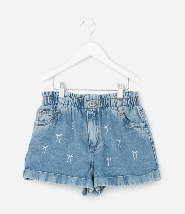 Short Infantil Clochard em Jeans com Estampa de Laços – Tam 5 a 14 Anos Azul