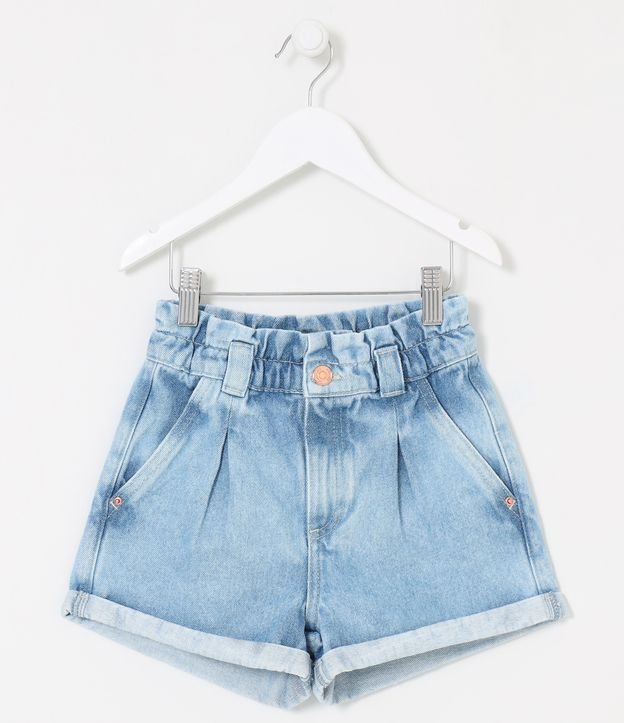Short Infantil Clochard em Jeans com Pregas - Tam 5 a 14 anos
