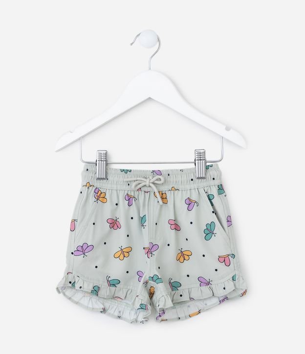 Short Infantil com Babado e Estampa Borboletas - Tam 1 a 5 Anos