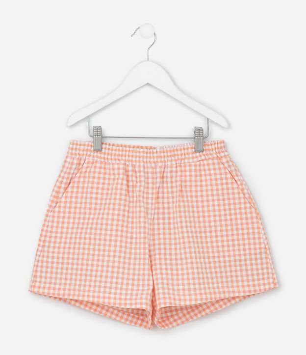 Short Infantil em Ana Ruga com Estampa Xadrez Vichy - Tam 7 a 14 Anos Laranja/Branco