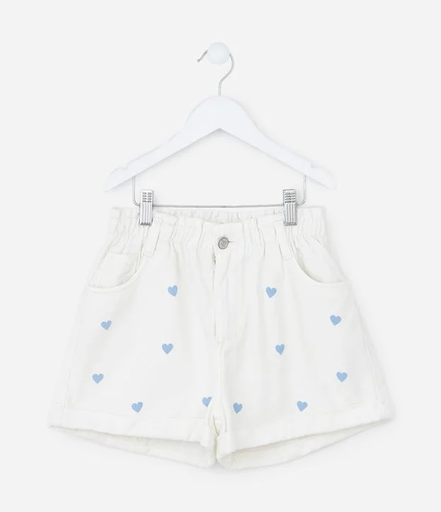 Short Infantil em Jeans Clochard com Estampa de Corações – Tam 5 a 14 Anos Branco