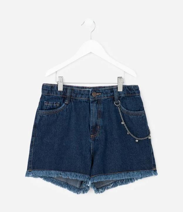 Short Infantil em Jeans com Corrente de Borboletas – Tam 5 a 14 Anos Azul Marinho