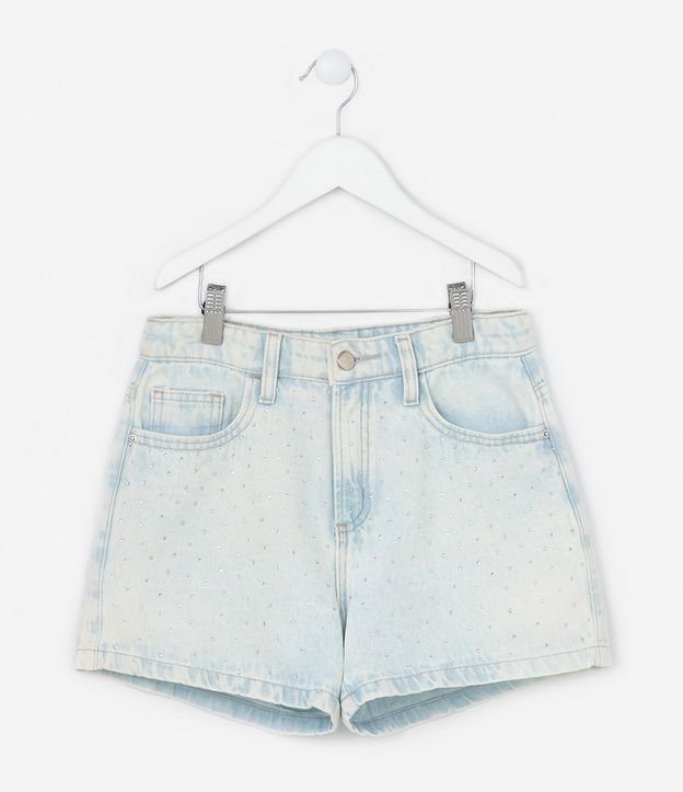 Short Infantil em Jeans com Strass - Tam 5 a 14 Anos Azul