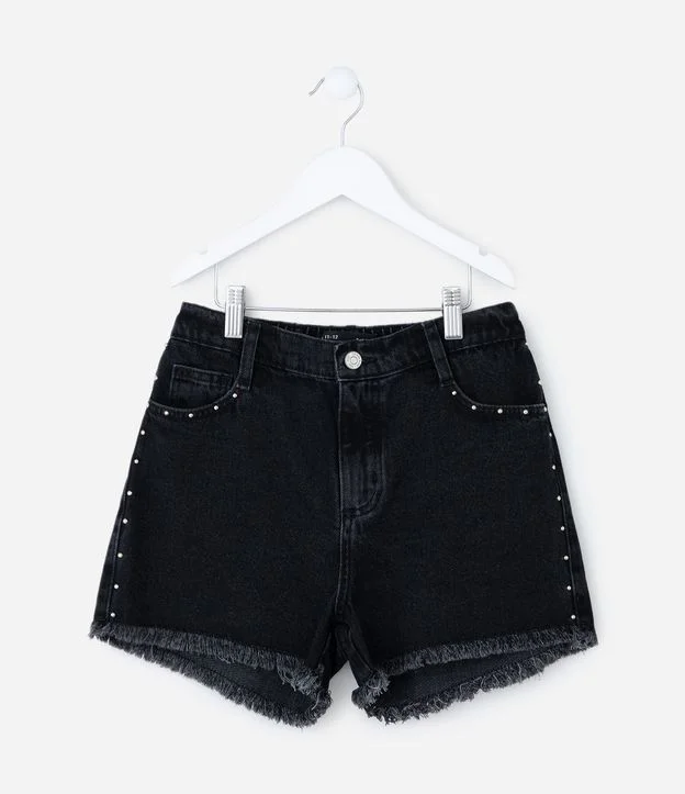 Short Infantil em Jeans com Tachas e Barra Desfiada – Tam 5 a 14 Anos Preto