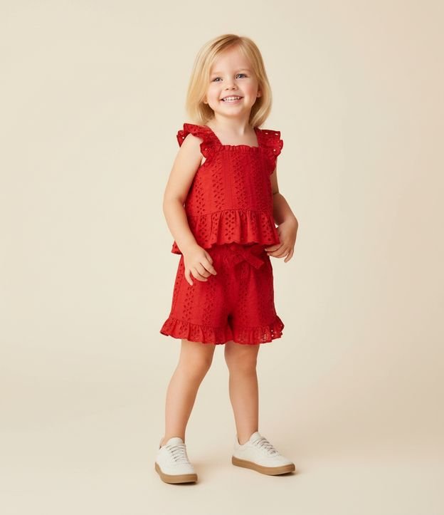 • Short Infantil em Laise com Babado - Tam 1 a 6 Anos Vermelho 6