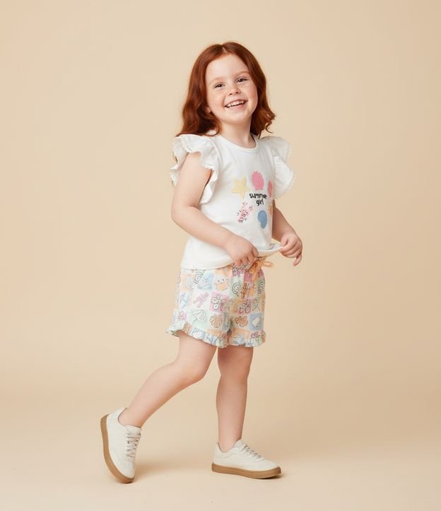 Short Infantil em Microfibra com Estampa Fundo do Mar - Tam 1 a 6 Anos Bege