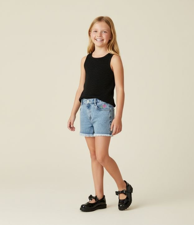 Short Infantil Regular em Jeans com Flor Bordada - Tam 7 a 14 Anos Azul