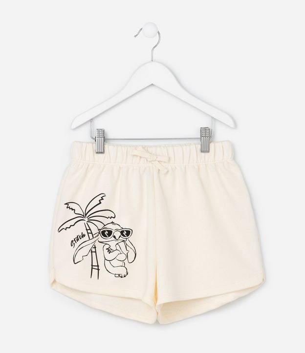 Short Infantil Runner em Moletom com Estampa do Stitch - Tam 5 a 14 Anos Bege