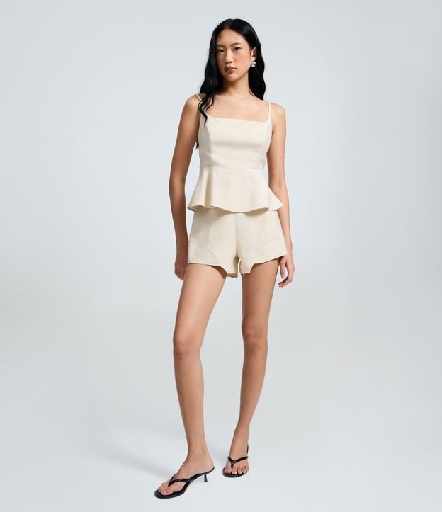 Short Mini em Viscose Alfaiatado com Recorte Assimétrico Bege