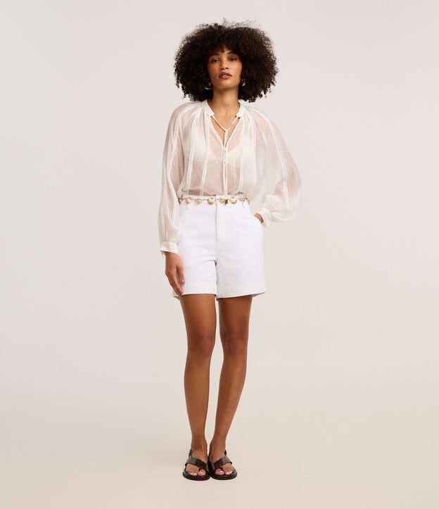 Short Mom Cintura Alta em Sarja com Bolsos Branco