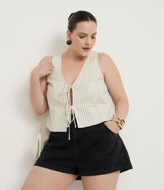 Short Mom em Jeans com Barra Dobrada Curve & Plus Size