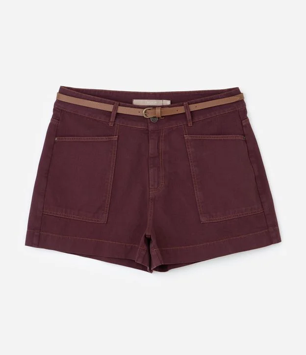Short Mom em Sarja com Costura Ocre e Cintinho Curve & Plus Size Vinho