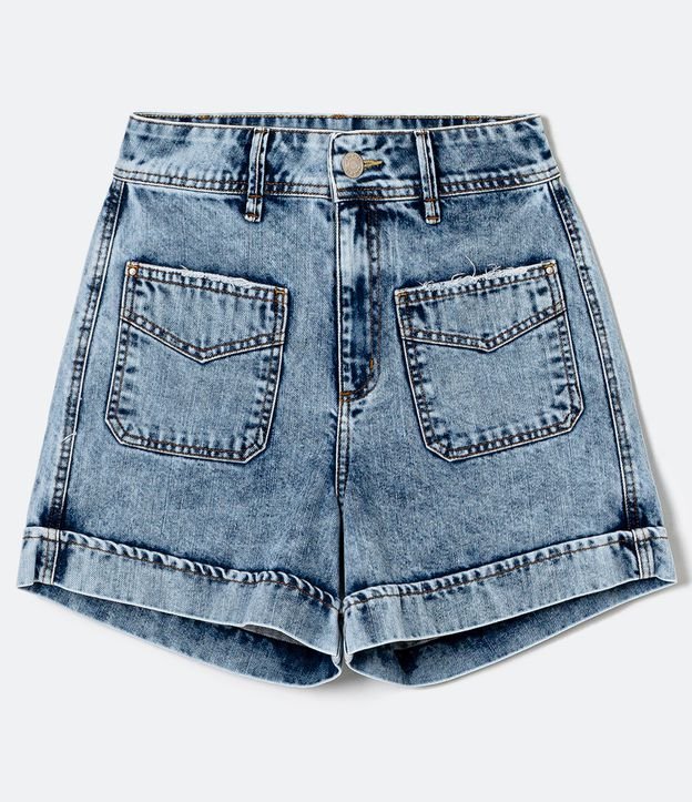 Short Mom Jeans Marmorizados com Bolsos Frontais