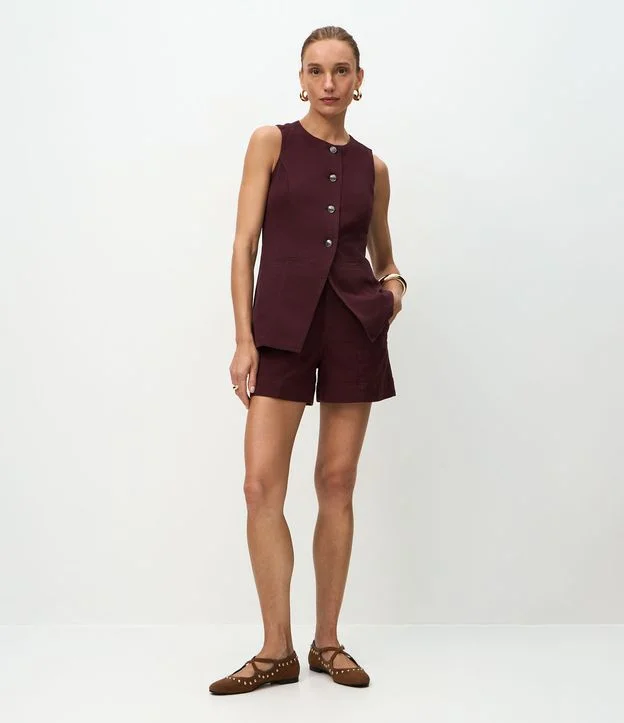 • Short Regular em Sarja com Cintura Alta e Bolso Faca Roxo Escuro 5