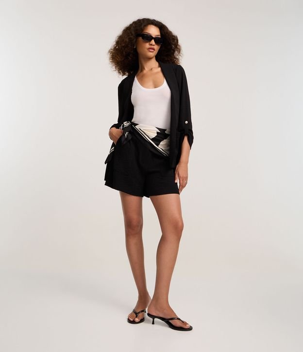Short Reto Cintura Alta em AIrflow com Amarração Preto