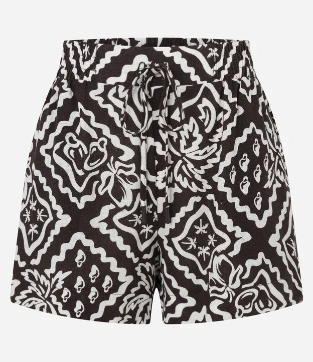 Short Runner com Cós Elástico e Estampa Floral Marrom