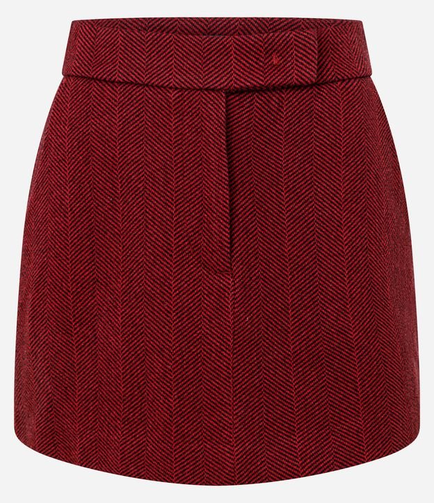 Short Saia com Cós Transpassado e Padronagem Espinha de Peixe Vermelho