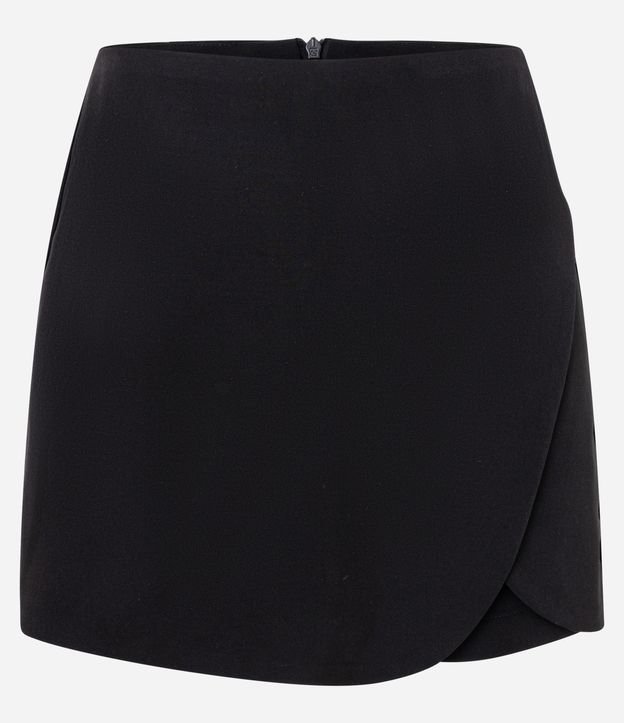 Short Saia Curto em Alfaiataria com Transpasse Arredondado Preto