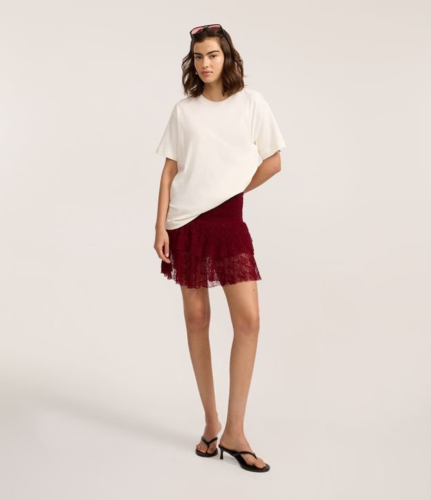 • Short Saia em Renda Texturizada com Babados Bordô 3