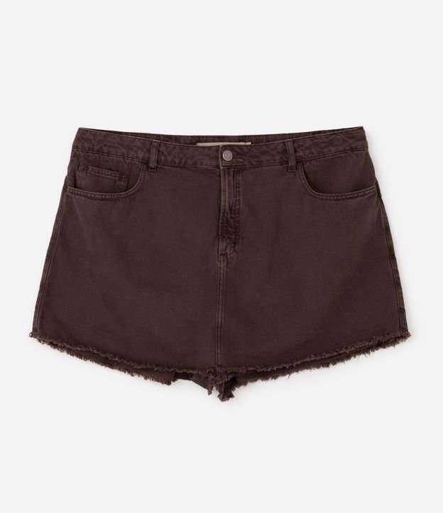 Short Saia em Sarja com Barra a Fio Curve & Plus Size Marrom