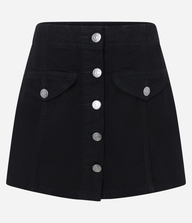 Short Saia em Sarja com Botões e Bolso Acessório Preto