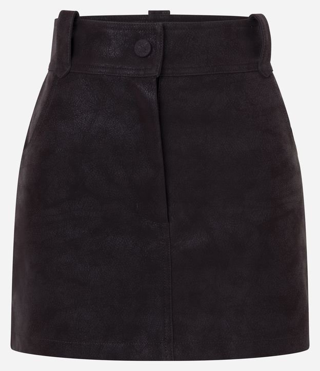 Short Saia em Suede com Bolsos e Botão Forrado