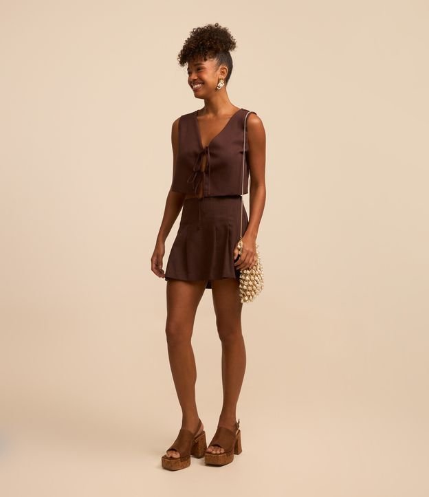 Short Saia em Tricoline com Pregas Marrom