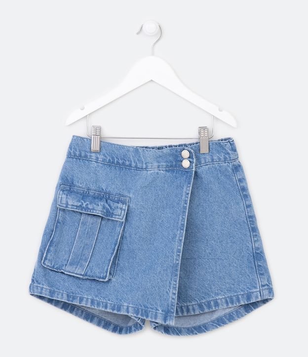 Short Saia Infantil com Fechamento Transpassado e Bolsinho Frontal - Tam 5 a 14 Anos