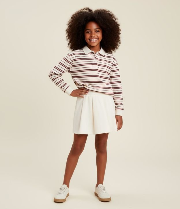 Short Saia Infantil com Pregas - Tam 5 a 14 Anos Off White