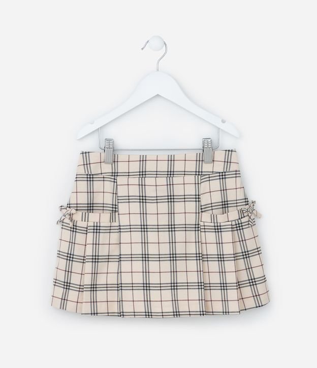 Short Saia Infantil em Alfaiataria com Estampa Xadrez - Tam 5 a 14 Anos Bege