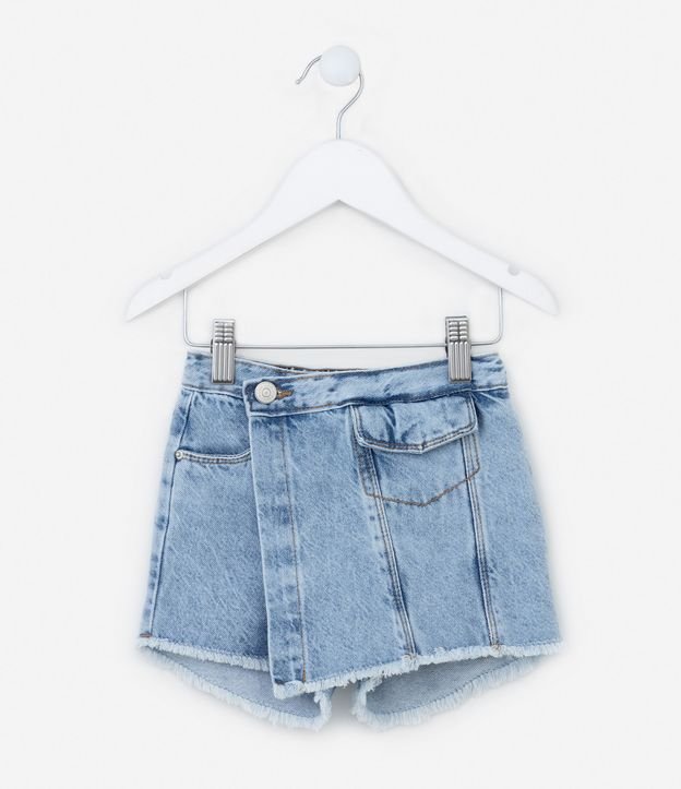 Short Saia Infantil em Jeans com Bolsinho - Tam 1 a 5 Anos