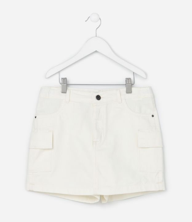 Short Saia Infantil em Sarja com Bolso Cargo - Tam 5 a 14 Anos Off White