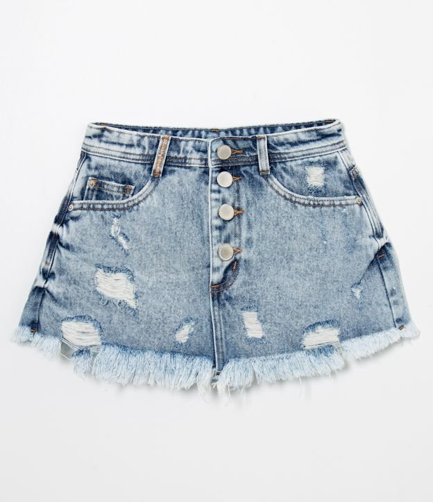Short Saia Jeans Puidos Short Saia Jeans Puidos com Botões na Vista TEENS