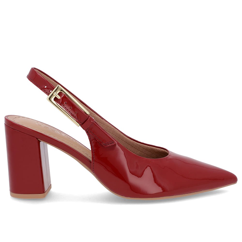 Slingback Casual Vermelho Salto Bloco Verniz Vermelho