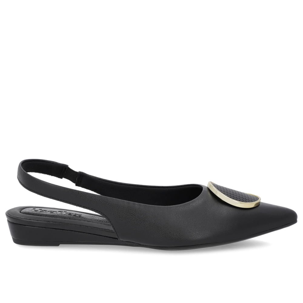 Slingback Preto Salto Anabela Couro Enfeite Preto