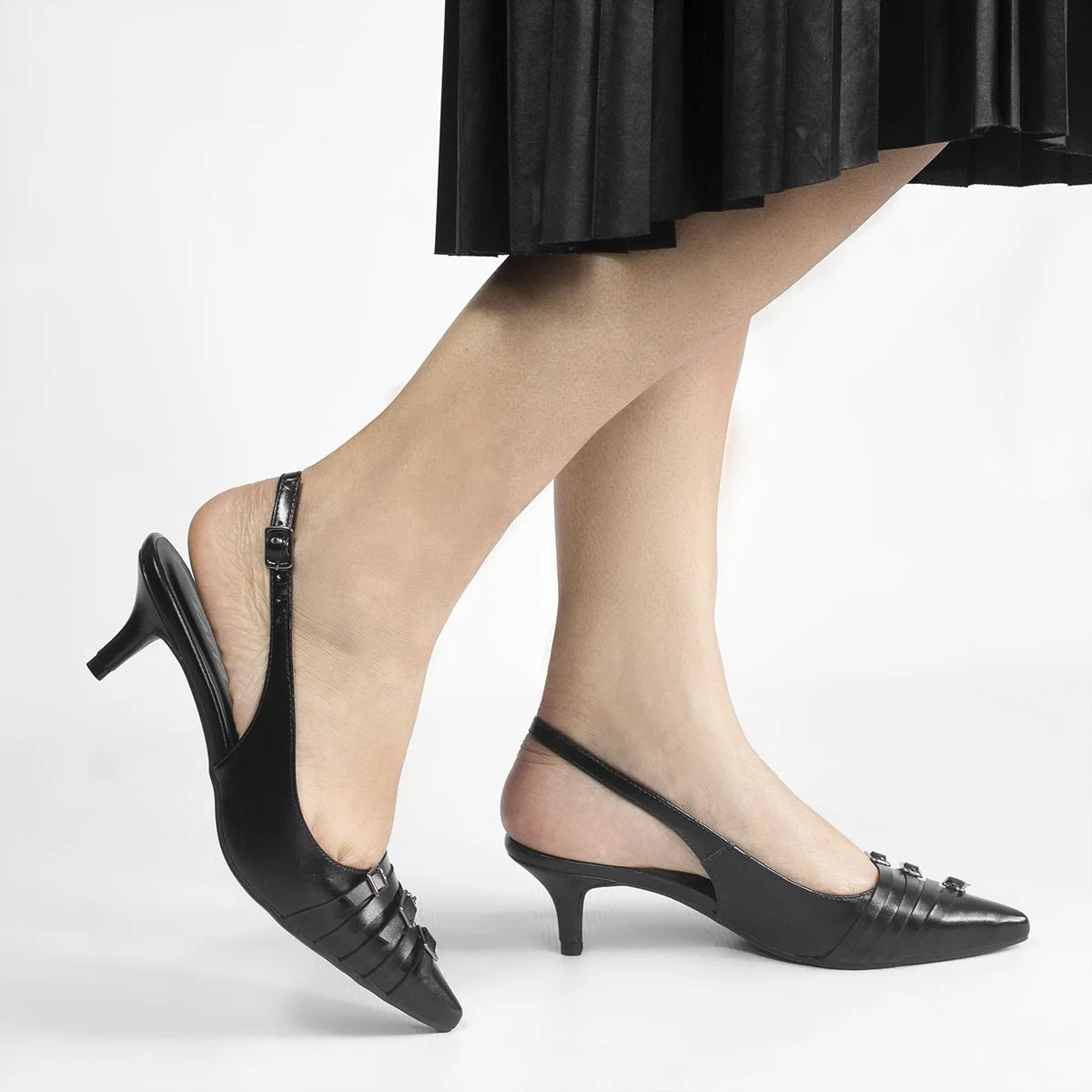 Slingback Zatta Bico Fino Três Fivelas Frontais Gloria Preto