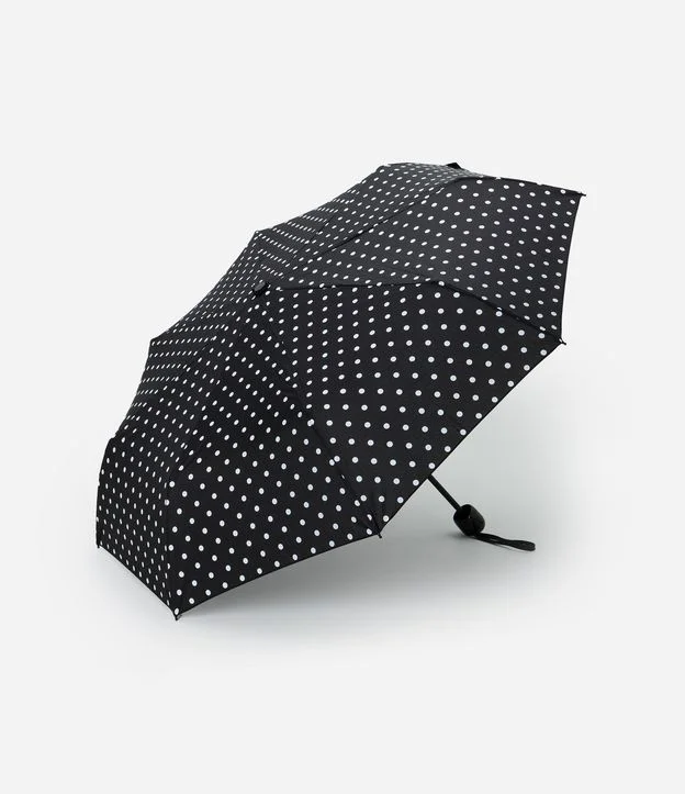 Sombrinha unissex em poliéster com estampa de poás. Possui estrutura dobrável e capa acompanha alça de punho para transporte. Quando fechada, fica compacta e fácil de guardar na bolsa.