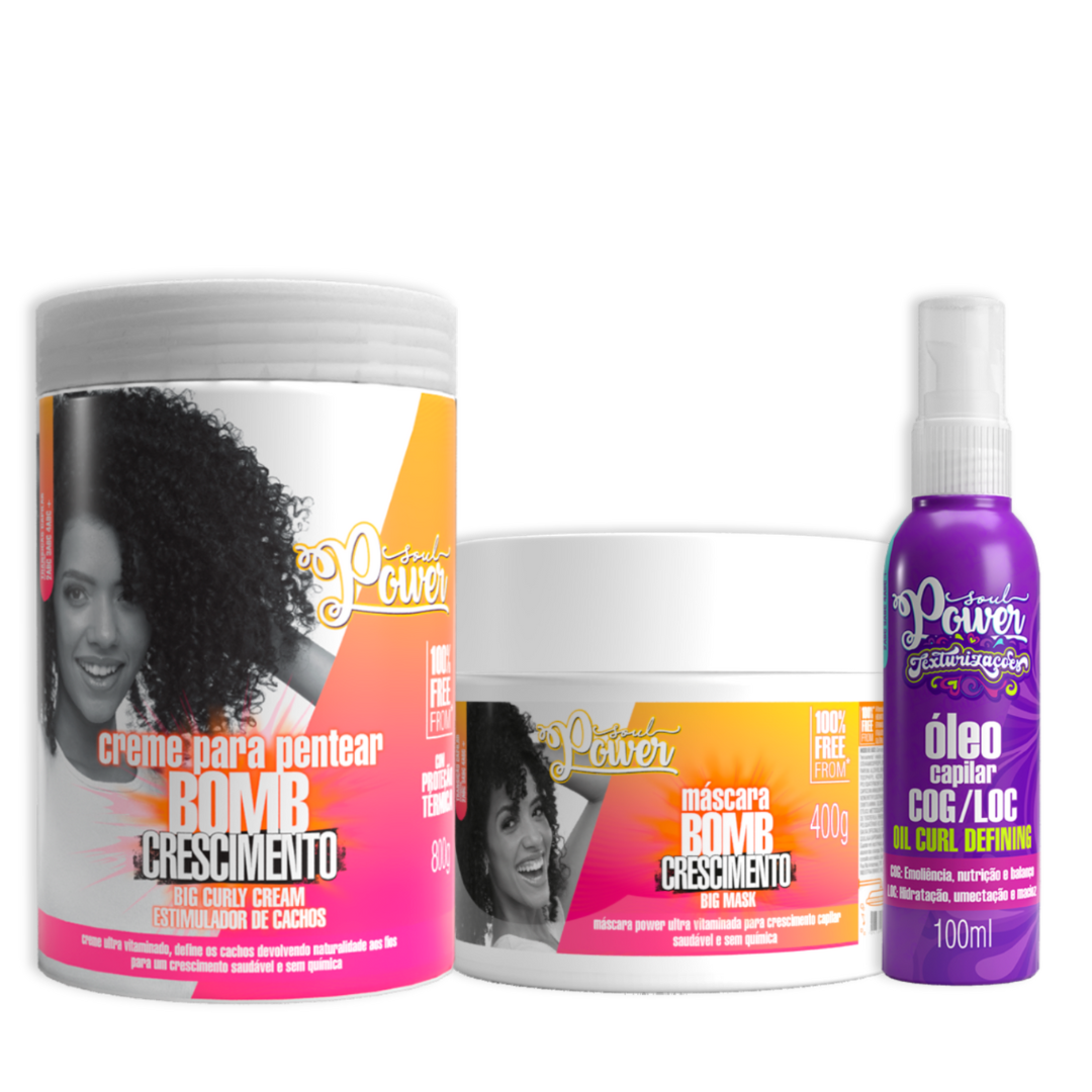 Soul Power Bomb Crescimento Máscara + Creme Pentear 800ml + Óleo COG/LOG