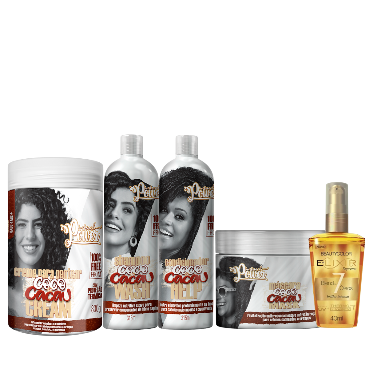 Soul Power Coco e Cacau Completo + Creme p/ Pentear 800ml + Elixir Óleo